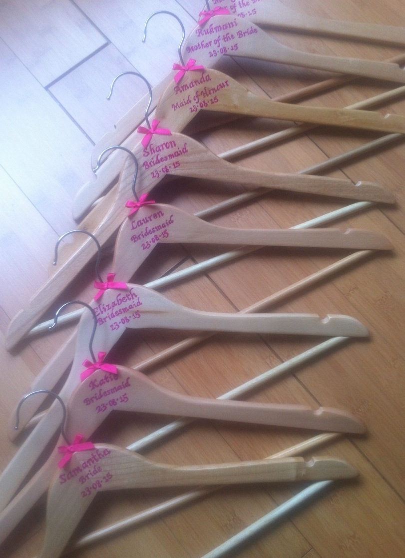 I made the deadline. The bride-to-be LOVED the hangers, thank God – which didn’t turn out too badly in the end, even if I do say so myself! – and was sweet enough to send me some pics. Just shows what you can achieve with a little effort (and a lot of rosé). : )